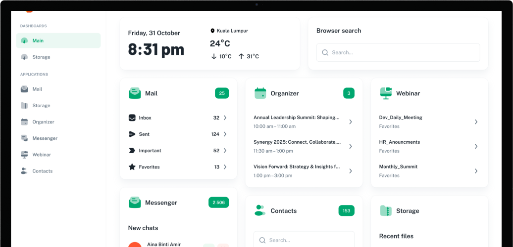Place your business at the heart of a seamless digital ecosystem with secure integrated tools for communication, project management and collaboration